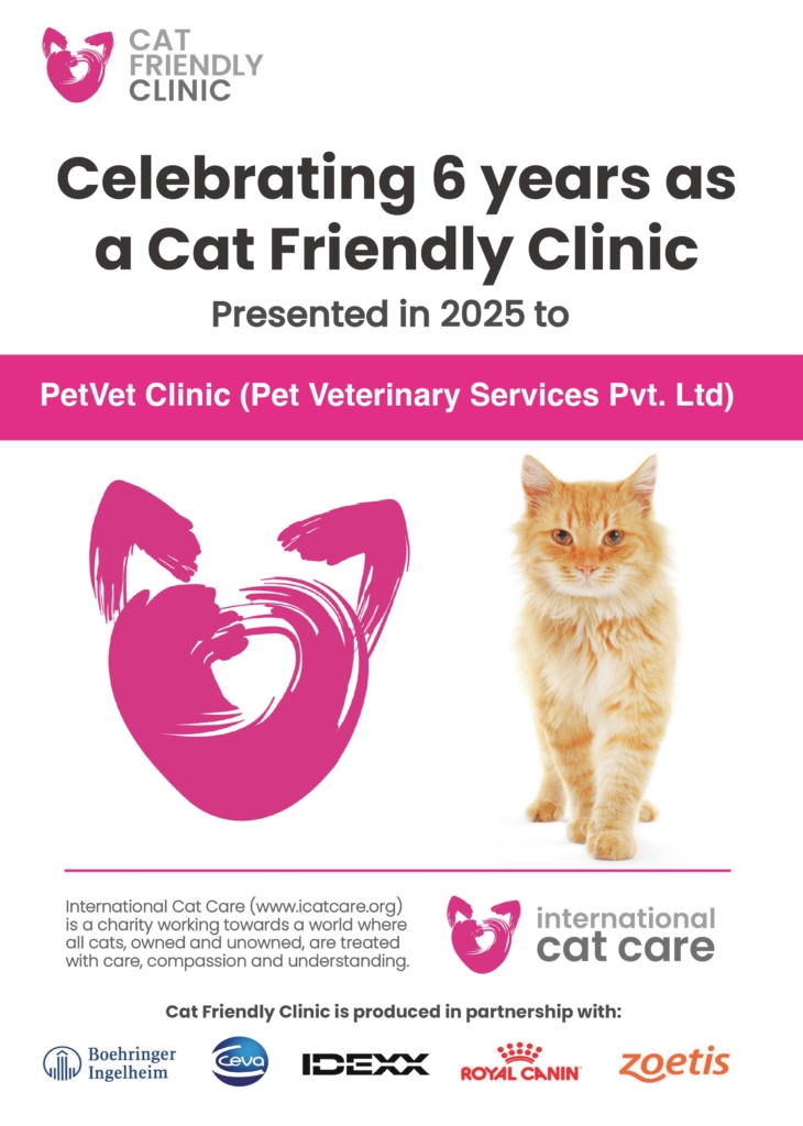 Accredited Cat Friendly Clinics meet strict international standards designed to make every visit less stressful and more comfortable for cats. At PetVet, our team: